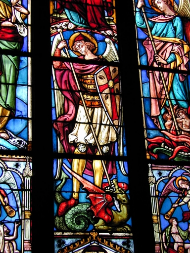 Verrière baie 16 : Iconographie de saint Michel,