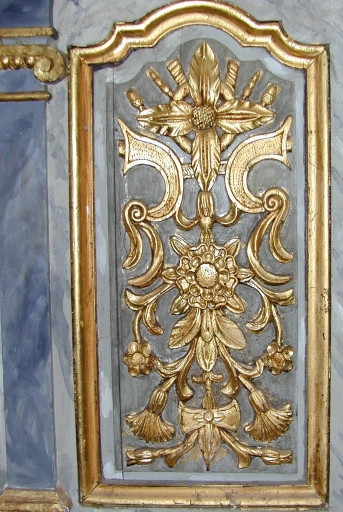 - bois, mouluré, tourné, peint, faux marbre, doré, décor dans la masse, décor rapporté, décor en ronde bosse, décor en haut relief