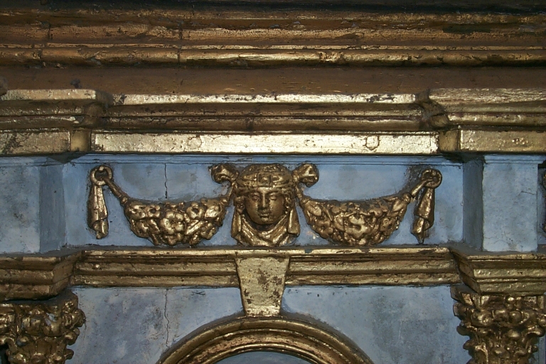 Inscription gravée sur le fronton de la niche supérieure : P. 1762 COLIN.