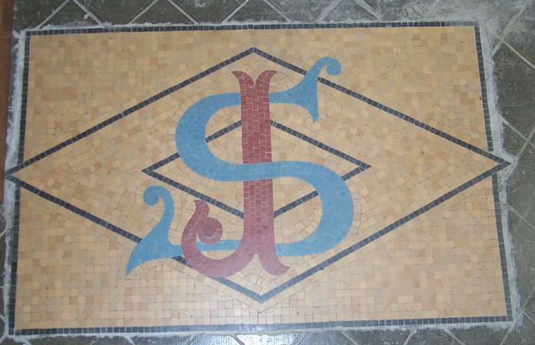 Les mosaïques forment plusieurs inscriptions : dans le bras du transept sud : SJ ; dans le bras du transept nord : AM ; au bas de la nef : SPP.