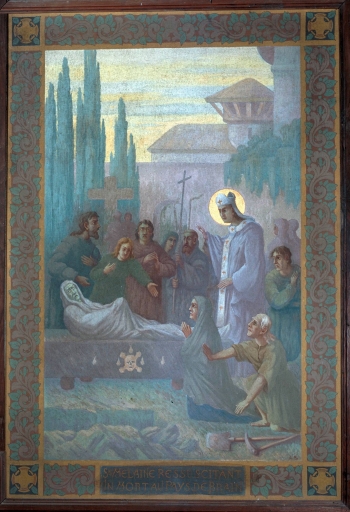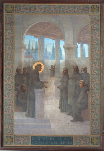 Les sept tableaux illustrant la vie de saint Melaine, offerts par l'abbé Bonnais et l'abbé Du Halgouët, ont été peints par Albert Baudry entre 1924 et 1927.