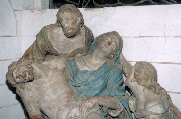 Il manque le pied gauche et le nez de la Vierge, un morceau de la barbe de Nicodème, le nez du Christ, celui de sainte Madeleine. La tête de saint Jean est recollée. La polychromie est très lacunaire.