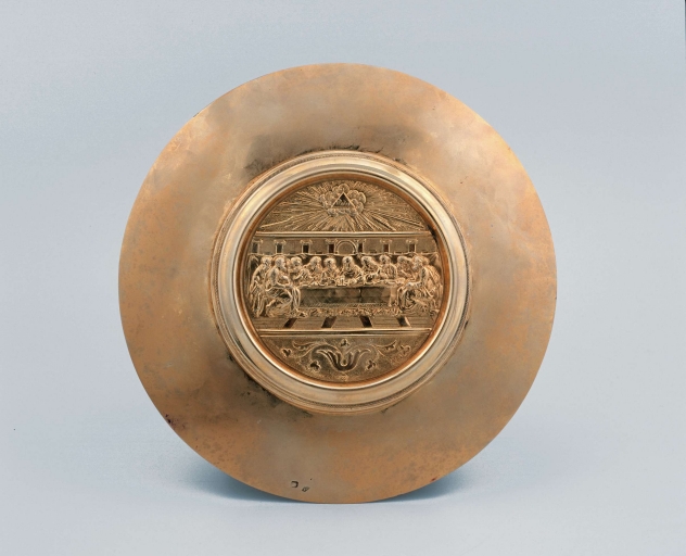 Inscription sur le coffret : L. FAVIER / FABt D'ORFEVRERIE / 25, Quai de l'Horloge / PARIS ; les deux poinçons sur la coupe du calice et sur la patène.