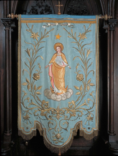 Bannière de procession : sainte Jeanne d'Arc, Immaculée Conception,