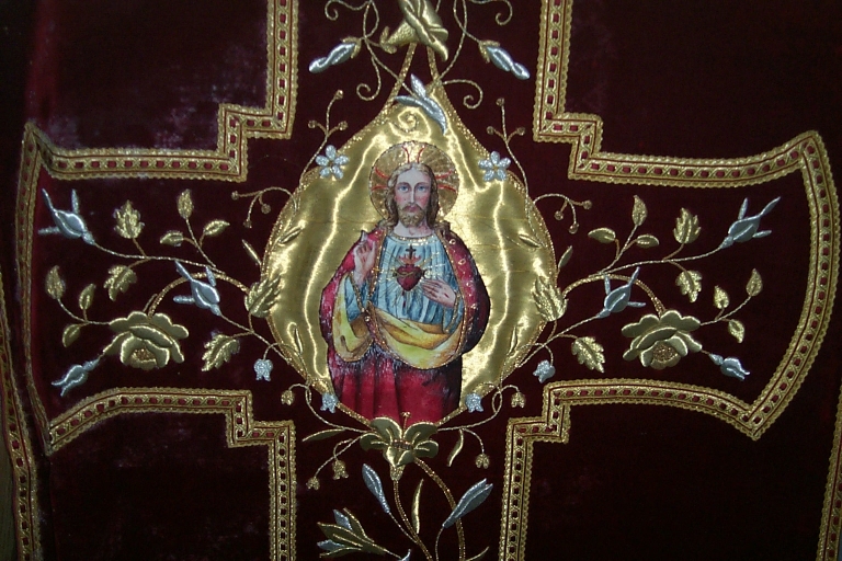 Marque tissée sur étiquette : CHARLES LE PAUL / ORNEMENTS D'EGLISES / LORIENT-QUIMPER.