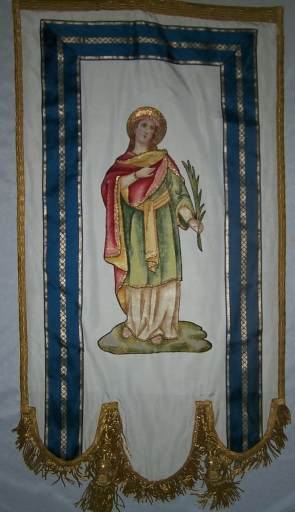 Bannière de procession : Education de la Vierge, sainte Alice (?),