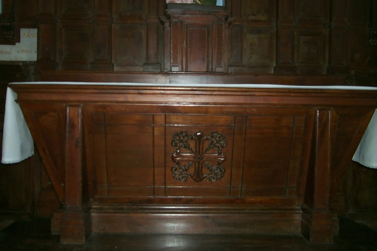 Autel-retable réalisé en 1851 par Jean-Julien Hérault, menuisier et sculpteur à Rennes.