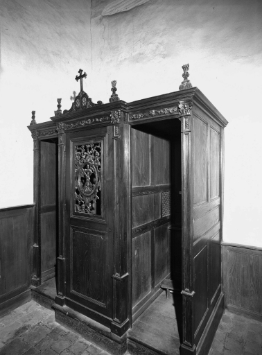 Pocquet du Haut-Jussé mentionne deux confessionnaux, peut-être réalisés par le menuisier sculpteur Hérault autour de 1858. De ces meubles, encore en place en 1975, n'est conservée que la façade de celui du bras nord du transept.
