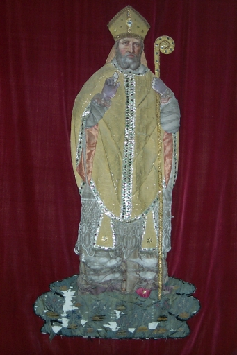 Le décor central sur la face de saint Martin est très abîmé dans sa partie basse : déchirures et lacunes du tissu.