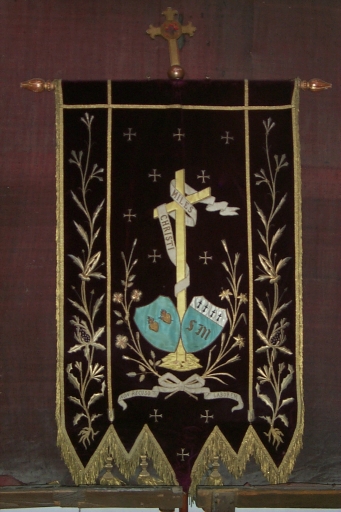 Inscription sur la face antérieure : COEUR SACRE DE JESUS / AYEZ PITIE DE NOUS ; sur la face postérieure : MILES CHRISTI / NON RECUSO / LABOREM.