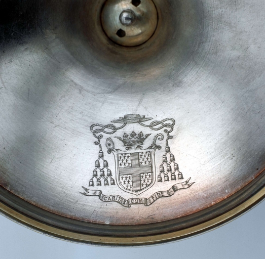 Ce ciboire portant les armoiries d'un archevêque, peut-être Monseigneur Guillaume Labouré, a été réalisé par l'orfèvre parisien Placide Poussielgue-Rusand entre 1847 et 1891, dates d'insculpation et de biffage du poinçon de fabricant.