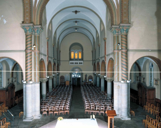 Seule la chaire à prêcher, de style Louis XIV, détonne dans cet ensemble néo-médiéval ; réalisée au 19e siècle, elle a pu être destinée à l'ancien édifice, son bon état justifiant sa réutilisation dans le nouveau bâtiment. Hormis ce meuble, seuls quelques objets liturgiques et un ornement datant du début et du milieu du 19e siècle sont conservés.