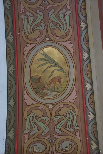 Décor d'architecture : peinture monumentale, 42 chapiteaux, 2 clefs de voûte,