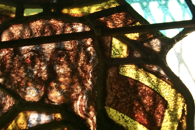 - PIOBJT Les fragments de verrière, de belle qualité, font partie du patrimoine de l'ancienne église.