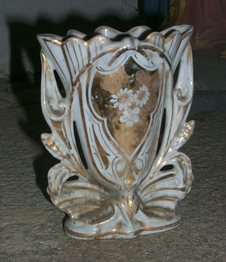 Vase d'autel : porcelaine (blanche) : moulée, dorée ; 19 H. Inscription en creux sous le pied : 287. Lieu d'exécution : Limousin, 87, Limoges (?) ; 4e quart 19e siècle. Fig. 6.