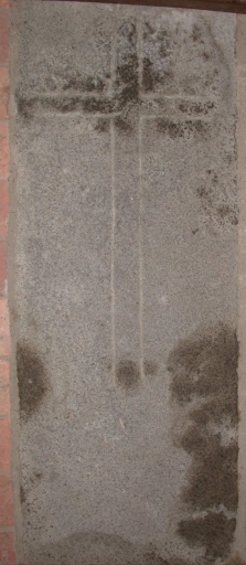 Dalle funéraire 5 : granite : gravé ; 172 L. 17e siècle. Représentation : croix sur base rectangulaire. (sans image).