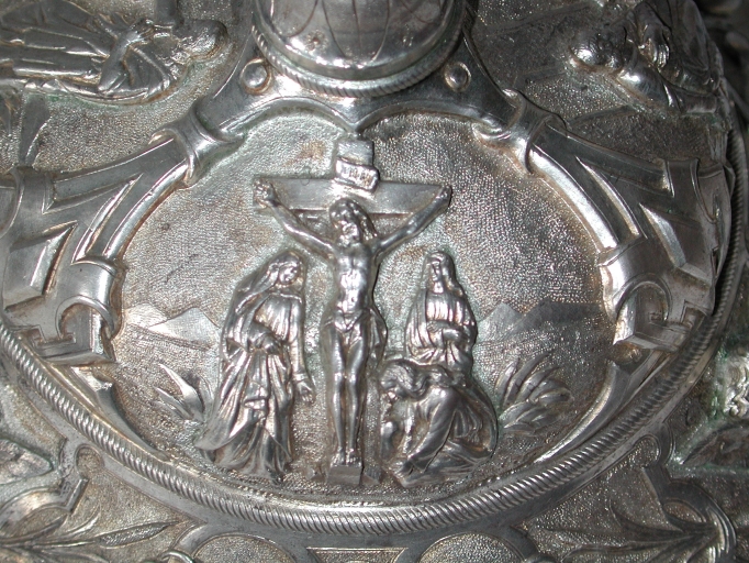 Le calice et la patène ont été fabriqué par l'orfèvre parisien Pierre Favier, actif entre 1846 et 1878.