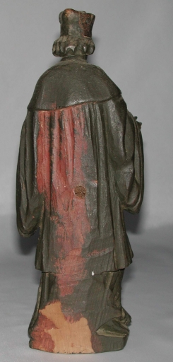 Il manque 4 statuettes. Traces de colle ; quelques piqûres d'insecte. Les statues ont été repeintes.