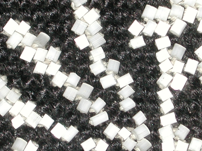 - soie, noire velours uni, application sur textile, tapisserie au point, adjonction d'éléments