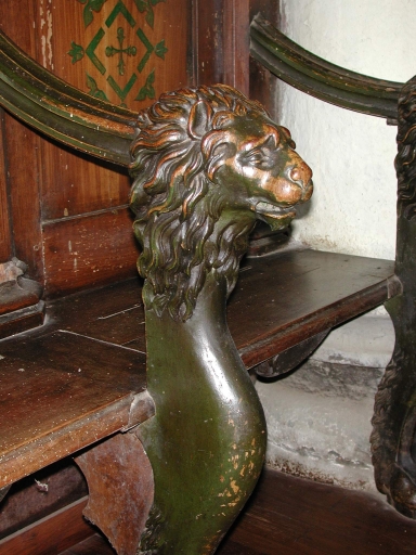 Décor de choeur : lambris de demi-revêtement, 2 stalles, 3 bancs de choeur,