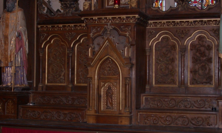 L'ensemble du maître-autel a été construit par le menuisier rennais Eugène Bellanger vers 1870.