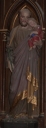- chêne, mouluré, découpé, ajouré, tourné, décor dans la masse, décor rapporté, décor en bas relief, décor en haut relief, teint, vernis, peint, peint à la poudre d'or