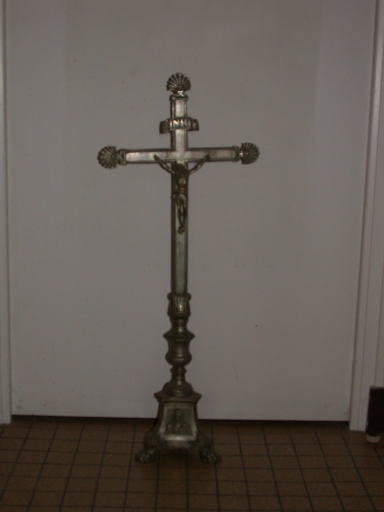 Croix d'autel : bronze : fonte, argenté ; 71, 5 H. 3e quart 19e siècle. Représentation : Christ ; Vierge ; coeurs enflammés. Fig. 10.