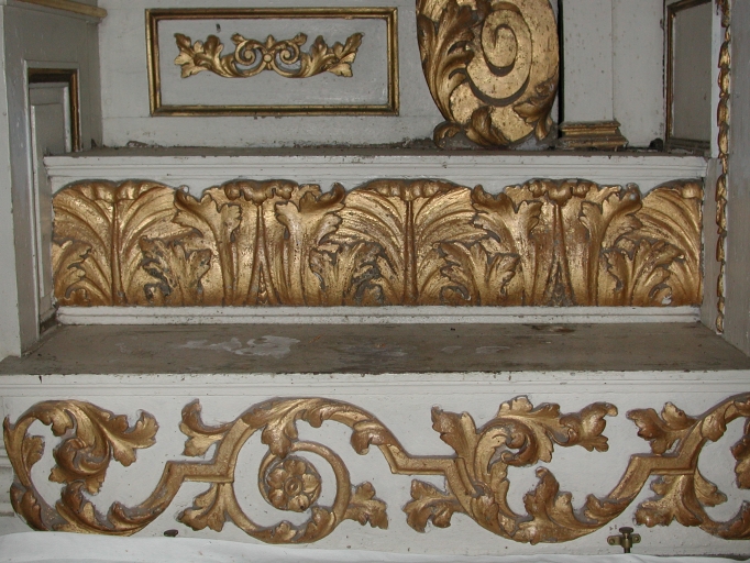 L'autel et le tabernacle ont peut-être été remplacés au 19e siècle. La peinture est en mauvais état, soit très encrassée, soit écaillée.