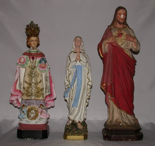 Statuette 2 : Sacré Coeur : plâtre : moulé, peint, polychrome, peint doré ; 65, 5 h. Le nez est cassé ; quelques éclats dans la peinture. 1er quart 20e siècle (?). Fig. 3.