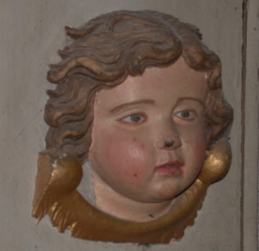 Léger affaissement vers le centre ; quelques planches disjointes, quelques éléments du décor ont disparu ; le portillon du tabernacle semble avoir été remplacé.