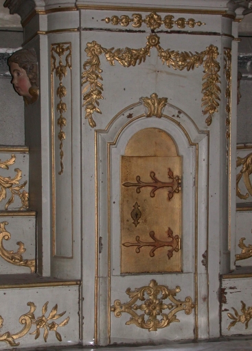 Le maître-autel de l'ancienne église se compose d'un autel datant peut-être de 1845 qui supporte des gradins et un tabernacle du 18e siècle (?).