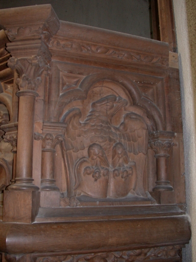 La chaire est déposée dans le bras nord du transept, l'escalier dans la chapelle privative de la famille de Chateaubriand.