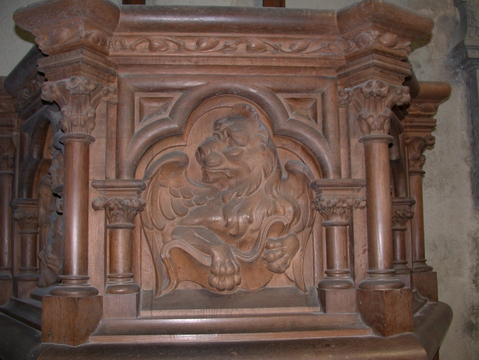 La chaire à prêcher a été réalisée en 1895 pour la somme de 6340 F ; c'est l'oeuvre de l'Atelier Rual, sur un modèle d'Arthur Regnault.