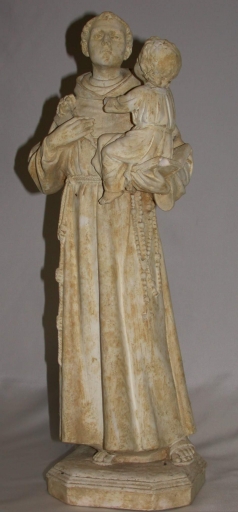 Statue : saint Antoine et l´Enfant : plâtre : moulé, peint ; 50,5 h. La tête de l´Enfant est cassée, il manque sa main gauche et son bras droit. 1er quart 20e siècle (?). Fig. 7.