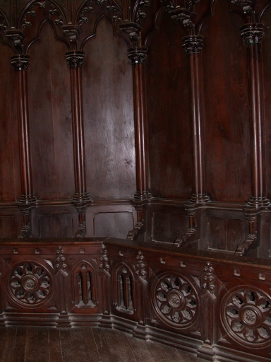 Décor de choeur : lambris de revêtement, 3x2 stalles et 8x2 fausses-stalles de célébrant,