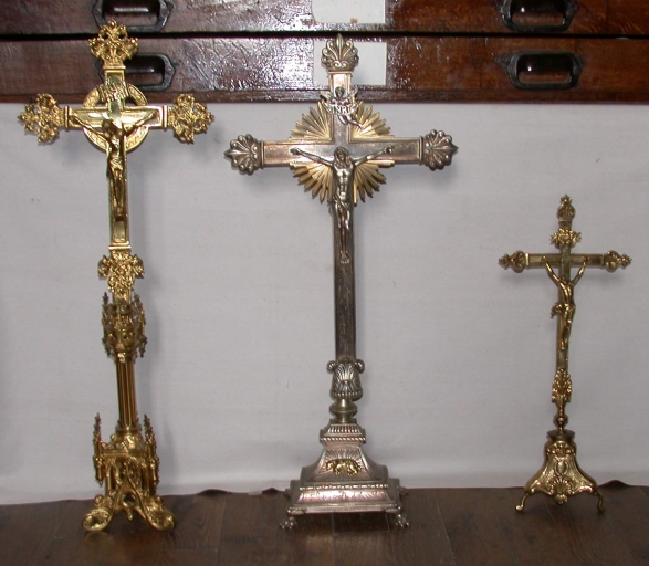 Croix d'autel 3 : métal : fonte, doré ; 41 h. 2e moitié 19e siècle. Représentation : palmette. Pied triangulaire. Fig. 12.