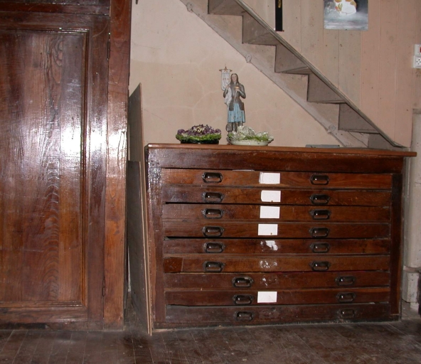 Meubles de sacristie : chasublier et armoires : châtaignier : mouluré, vernis. 19e siècle. Fig. 3.
