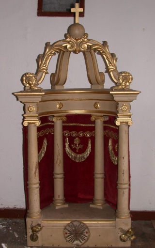 Pupitre d'autel-thabor : métal : fonte, doré, émail ; 31 h. 1er quart 20e siècle. Représentation : croix ; quadrilobe ; ornementation végétale. Fig. 11.