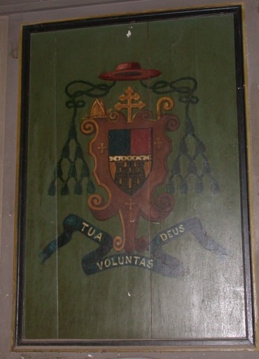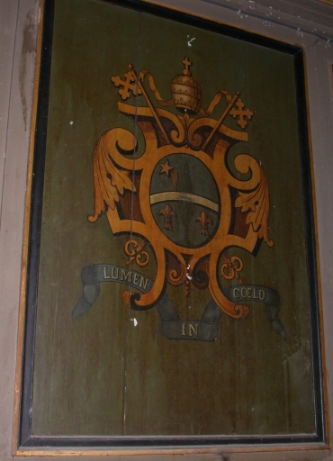 Armoiries peintes ; à gauche : armoiries du pape Léon XIII ; à droite : armoiries de Mgr Place.