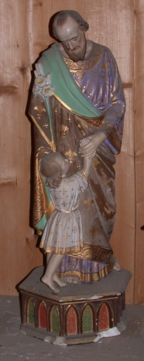 Statue : saint Joseph et l´Enfant : plâtre, moulé, peint, polychrome, doré ; 66, 5 h. La base est cassée. Limite 19e siècle 20e siècle. Fig. 7.