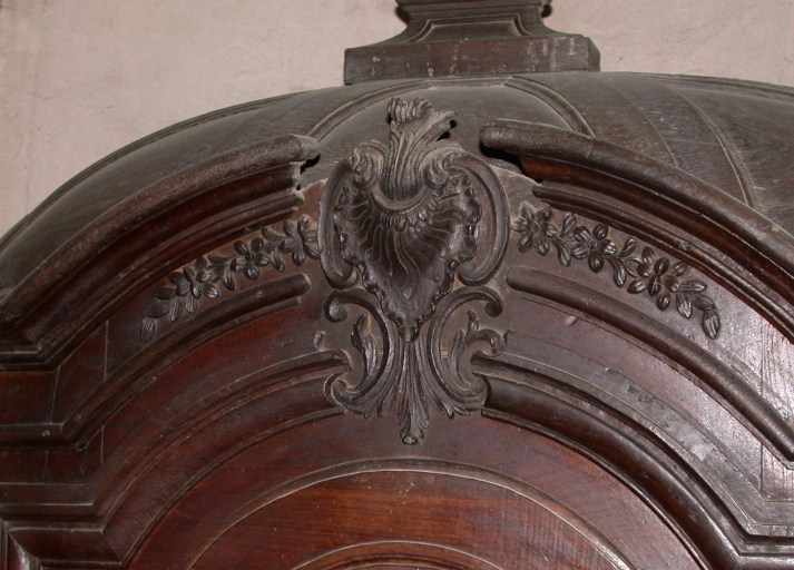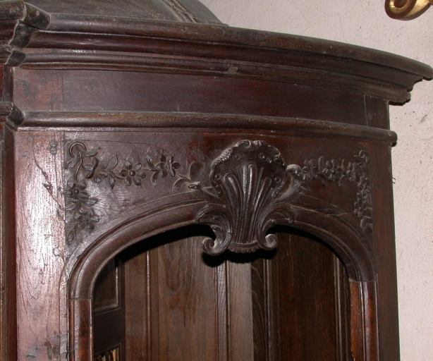 - bois, mouluré, découpé, décor dans la masse, décor en bas relief, teint, vernis