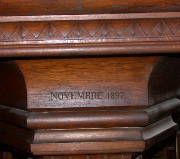La chaire à prêcher, dessinée par Arthur Regnault, a été fabriquée par l'Atelier Rual en novembre 1897 comme l'indique une date gravée sur le culot. Offerte par la vicomtesse du Halgouët, elle a été inaugurée en avril 1898.