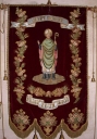 Il semble que l'on découpé des motifs décoratifs (vases de fleurs) dans du tissu du milieu du 19e siècle, et qu'on les ait cousus et entourés d'une fine chenille.