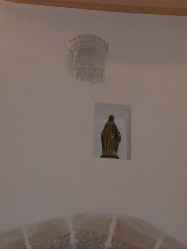 Statuette : Notre-Dame de Lourdes : plâtre : moulé, peint, polychrome, peint doré ; 32 h ; oeuvre déposée, il manque une partie du socle. Inscription incomplète en creux à l'arrière : .. PENE ALBAN / LOURDES. 20e siècle. Fig. 37.