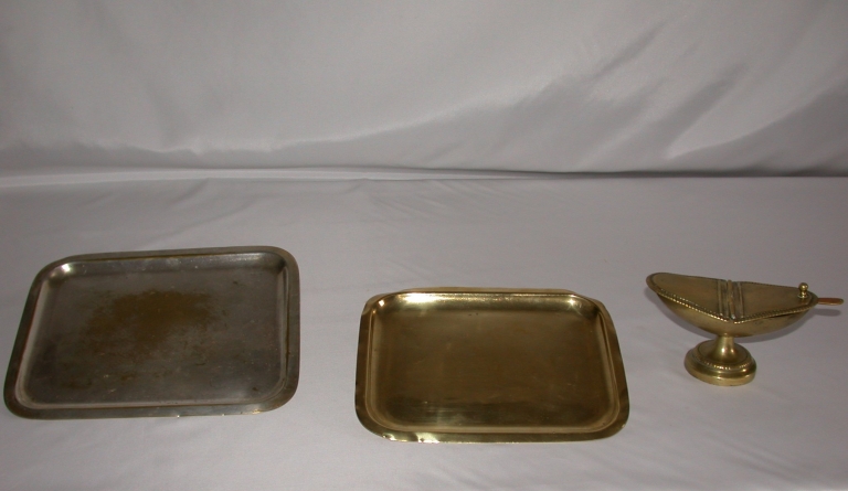 2 Plateaux de communion : métal : fonte, argenté /doré ; 22,8 l / 20,1 l. 1ère moitié 20e siècle. Fig. 18.