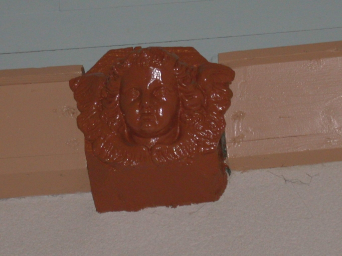 Armoiries sur l'intrados de l'arc : à l'est : de sable à la branche d'argent disposée en bande, au chef d'argent à trois fleurs de lys de gueules (famille Levesque) ; à l'ouest : mi-parti à dextre de sable à la branche d'argent disposée en bande, au chef d'argent à trois fleurs de lys de gueules, à senestre d'argent à la croix de gueules gringolée d'or (famille de Montfort).