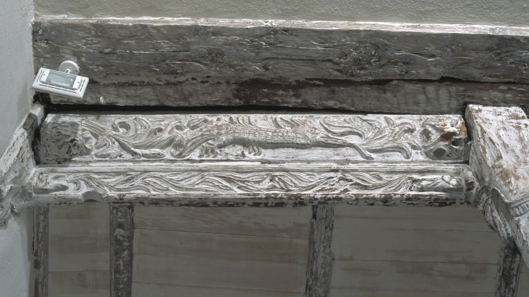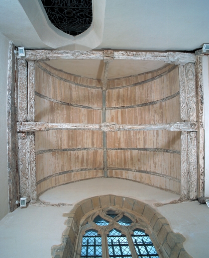 Décor de charpente de la chapelle nord : 4 sablières, 2 entraits, un poinçon,