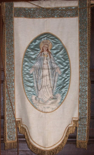Bannière de procession : Sainte Thérèse de l'Enfant-Jésus, Immaculée Conception,