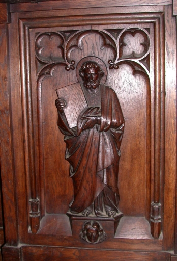 Les panneaux de la chaire constituent la base de l'autel face aux fidèles et l'ambon.