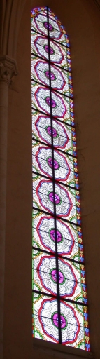 La verrière de la baie 100 a été offerte par Mme Onfroy. Les verrières 101 et 102 ont été offertes par les jeunes de la paroisse.